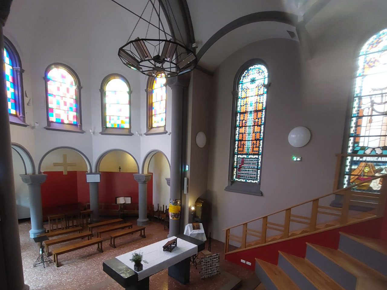 La chapelle, au centre des différents bâtiments, accueille les collégiens comme toi, mais aussi tous les membres de la communauté éducative de l’Ensemble Scolaire EIC, lors de la célébration qui a lieu tous les jeudis midi à 12h15.